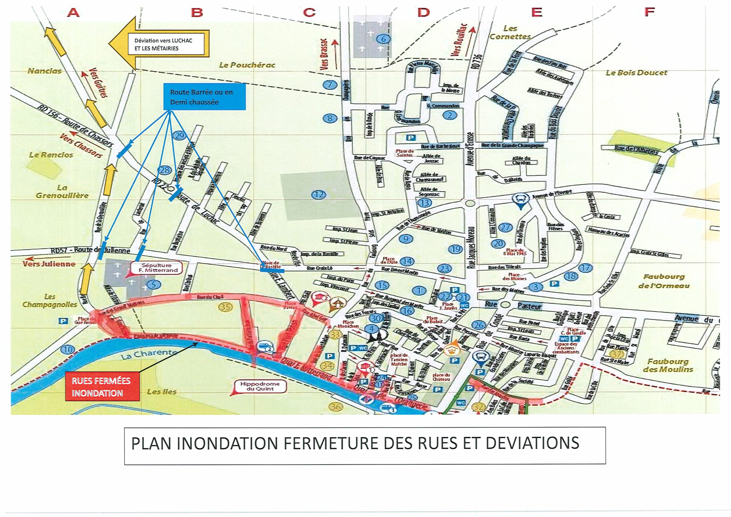 Une déviation sera mise en place via Luchac et Les Métairies. La sortie Ouest se fera via la rue Croix du Lô.